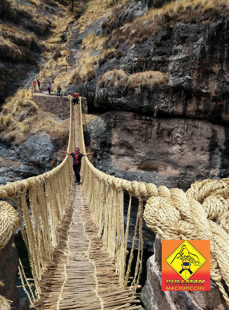 «Q’eswachaka» es un nombre nativo formado a partir de dos vocablos quechuas: «Q’eswa», que significa «trenza» y «Chaka», que significa «puente». Este puente es muy especial porque está construido sobre el camino Inca original hecho de una hierba especial (q’oya). Los materiales y técnicas de construcción se han transmitido de generación en generación desde la época de los Incas, ya que se construyó el primer puente en el siglo XV. Por lo tanto, el recorrido por el puente Q’eswachaka es una experiencia muy especial.
